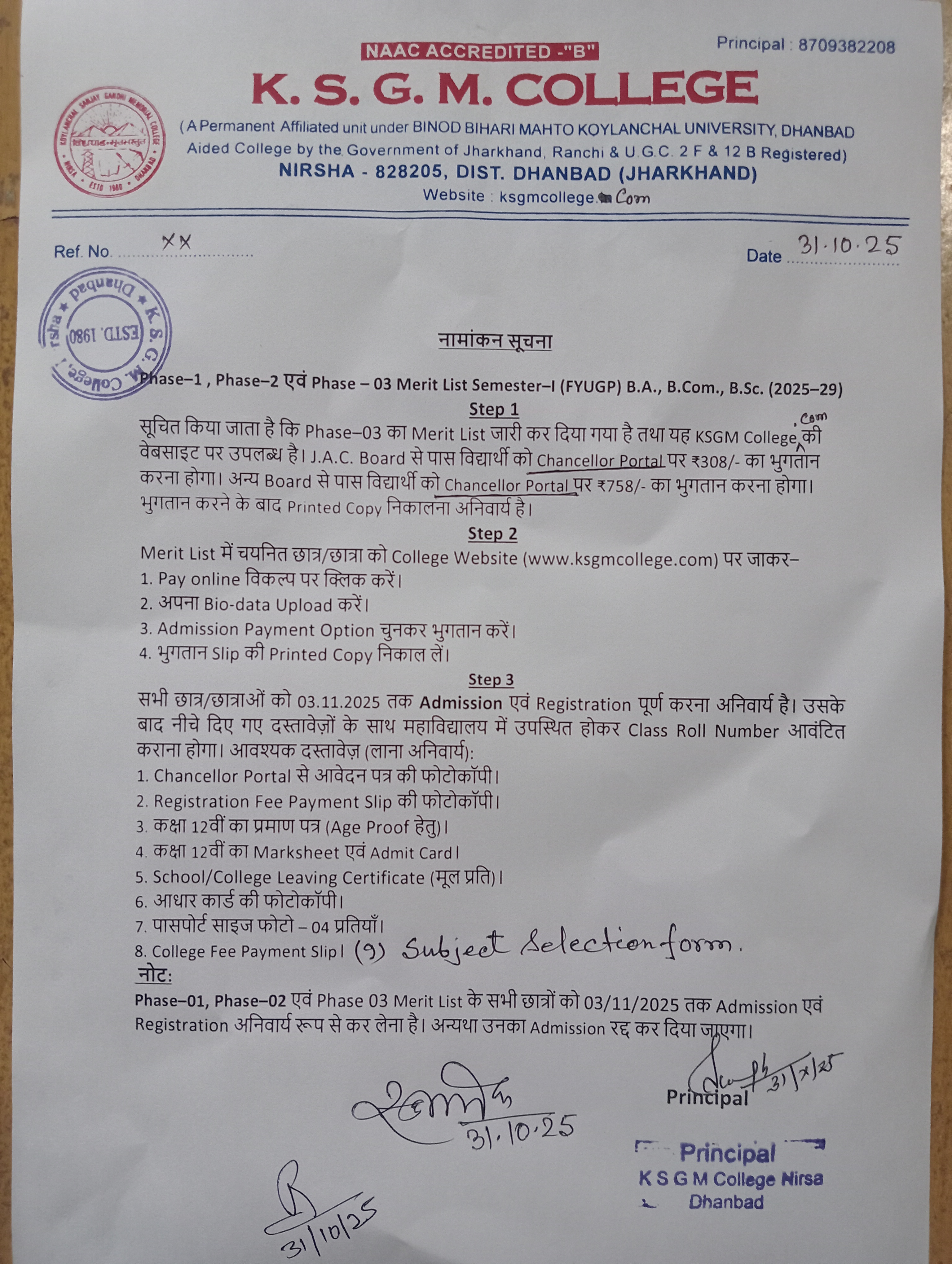 | 21-08-2025 | PHASE-II MERIT LIST-KSGM COLLEGE NIRSA 2025 |  |