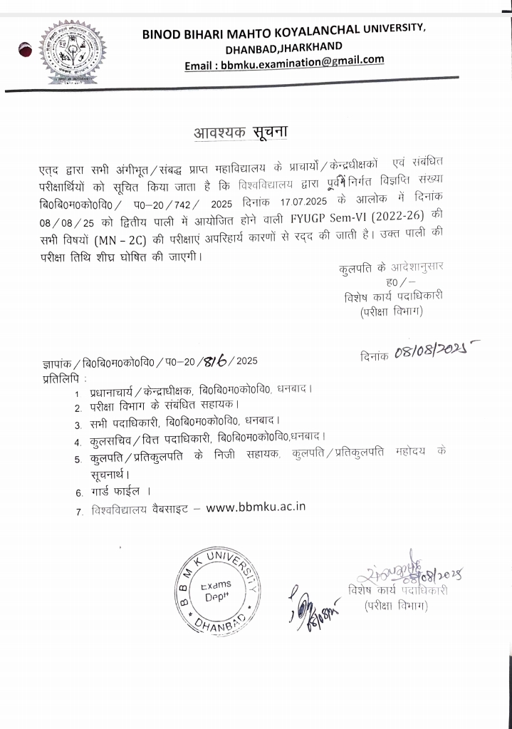 14-08-2025 | Notice Sem-VI (2022-26) |  |