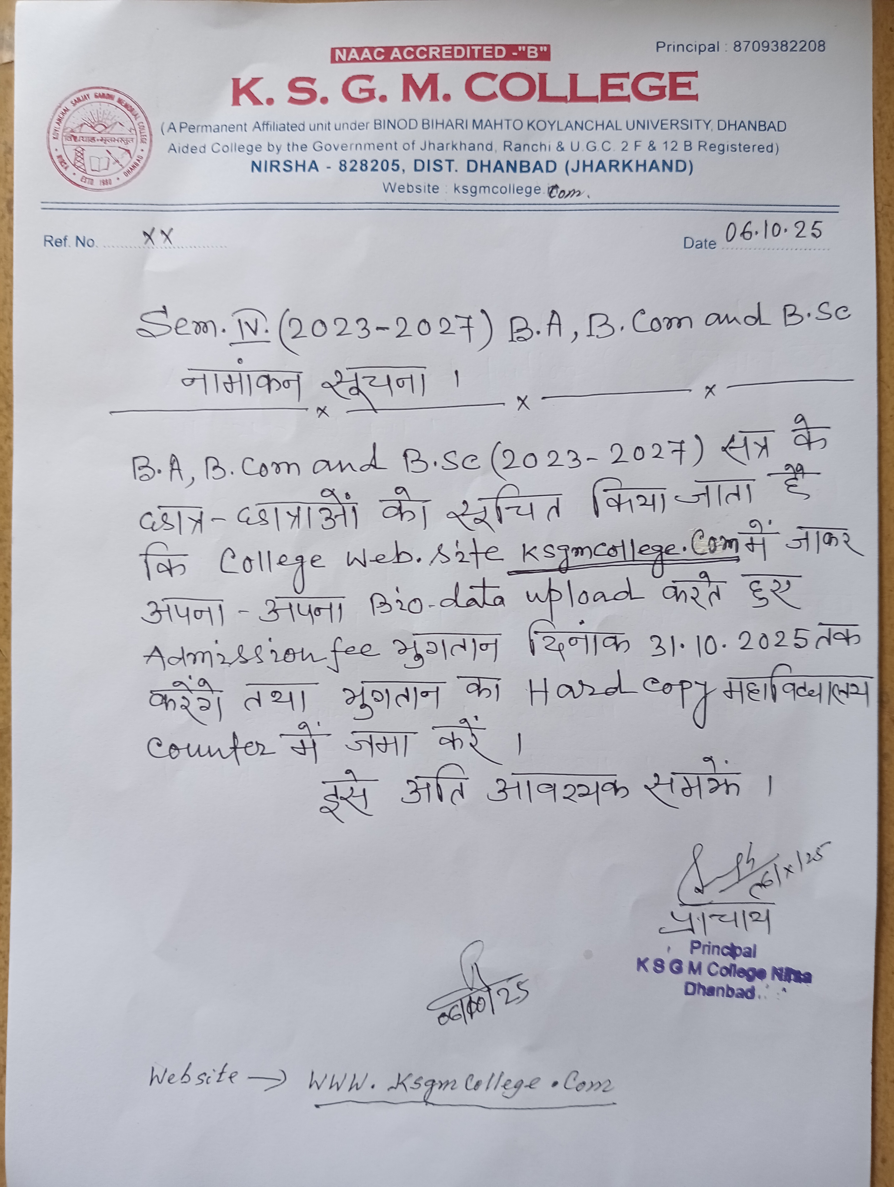 10-10-2025 | Sem-4 (2023-27) B.A, B. Com & B. Sc Admission Notice |  |