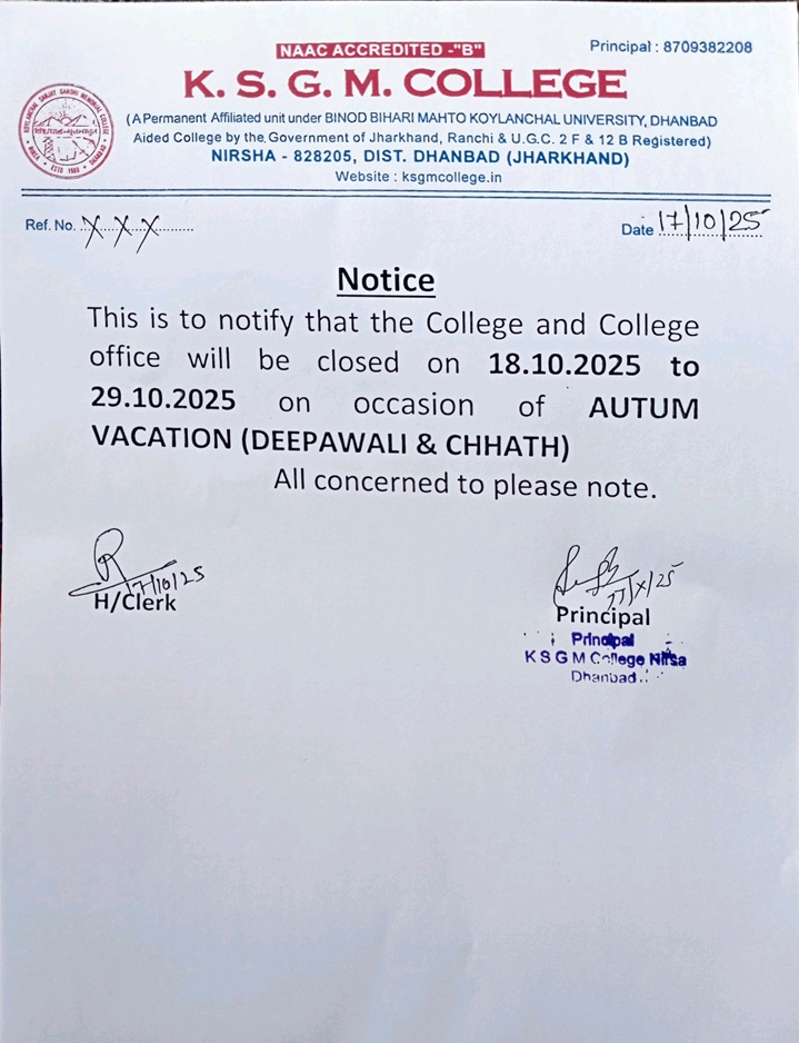 | 17-10-2025 | Autum Vacation (Deepawali & Chhath) Notice |  |